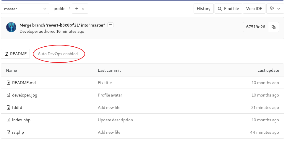 It is possible to use Bitlabs interface to add a new file to repository. I it to add a simple PHP reverse shell and save it as tellicorevshell.php: